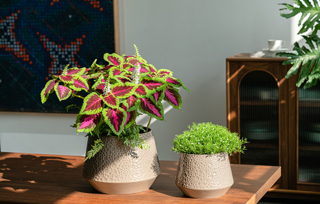 公司生產的氧化鎂花盆,重量輕、防凍、防紫外線、超耐用,造型紋理美觀大方,深受市場用戶喜愛?,F有研發人員10人,致力于開發功能更完善,外觀更精美的各式花盆產品。研發部每年以推出2大新系列,上百款款式的速度,為客戶帶去全面美好的種植體驗。